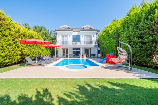 Villa Marvel is a 4-bedroom, 4-bathroom villa with a private pool, accommodating up to 8 people, located in the Hisarönü area of Ölüdeniz, Fethiye. All four bedrooms have en-suite bathrooms. It is suitable for large families and groups of friends. It is 2 km from Hisarönü, famous for its shopping and entertainment venues, 4 km from Ölüdeniz Beach, and only 8 km from Fethiye city center. All amenities are readily available for guests. A peaceful holiday awaits you in our quiet location.