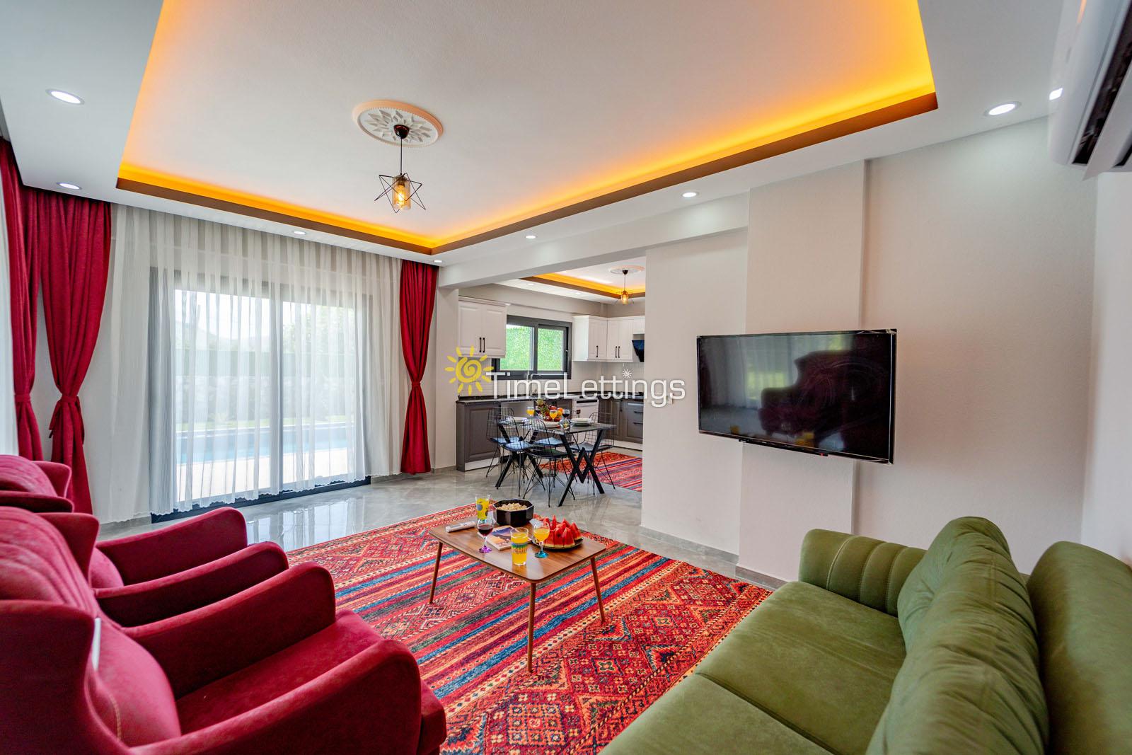 Note: All our villas, which are located in touch with nature, are regularly sprayed. Despite this, there is a possibility of pests etc. in the surroundings. We do not guarantee 100% invisibility in our villas with sheltered pools. There is always a 10% margin of protection in these villas. The villa photos on our site are taken with a 'Wide Angle Lens' to fit the image on the screen. For this reason, objects in the pictures may appear larger or smaller than their actual size.